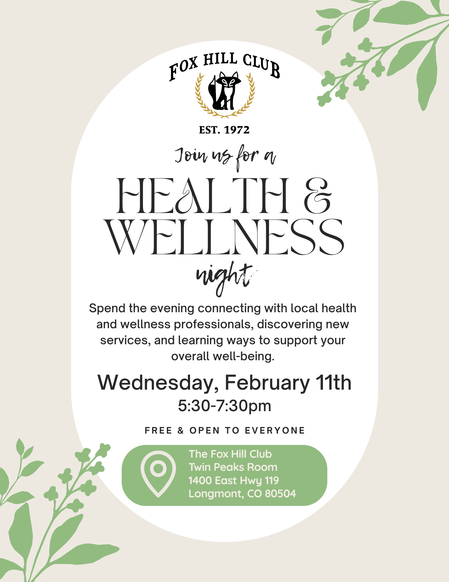 Health & Wellness Night at Fox Hill Club